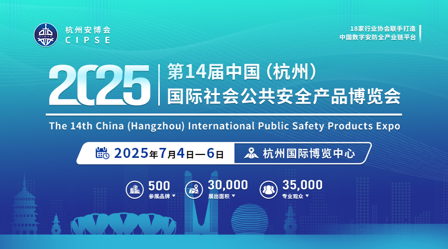 由浙江、广东、深圳、福建、陕西、新疆、江西、重庆、天津、青海、南京、上海、郑州、邯郸、苏州、武汉等18家行业协会共同打造的“2025第14届中国(杭州)国际社会公共安全产品博览会(简称:CIPSE 第14届杭州安博会)”将于2025年7月4-6日在杭州国际博览中心隆重举行。