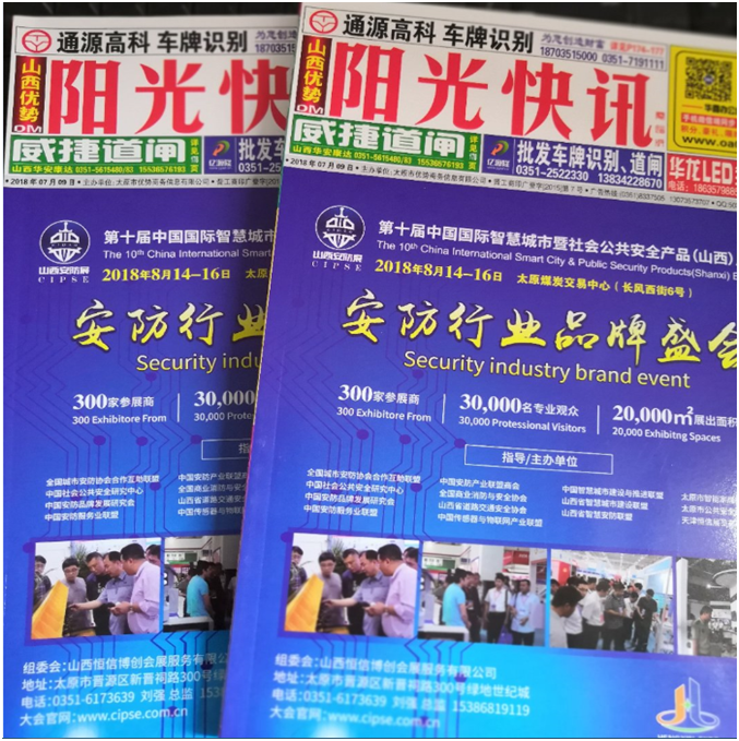 山西省发行量最大的安防行业媒体,7、8月份连续6期杂志封面广告独家宣传2018第十届山西安博会
